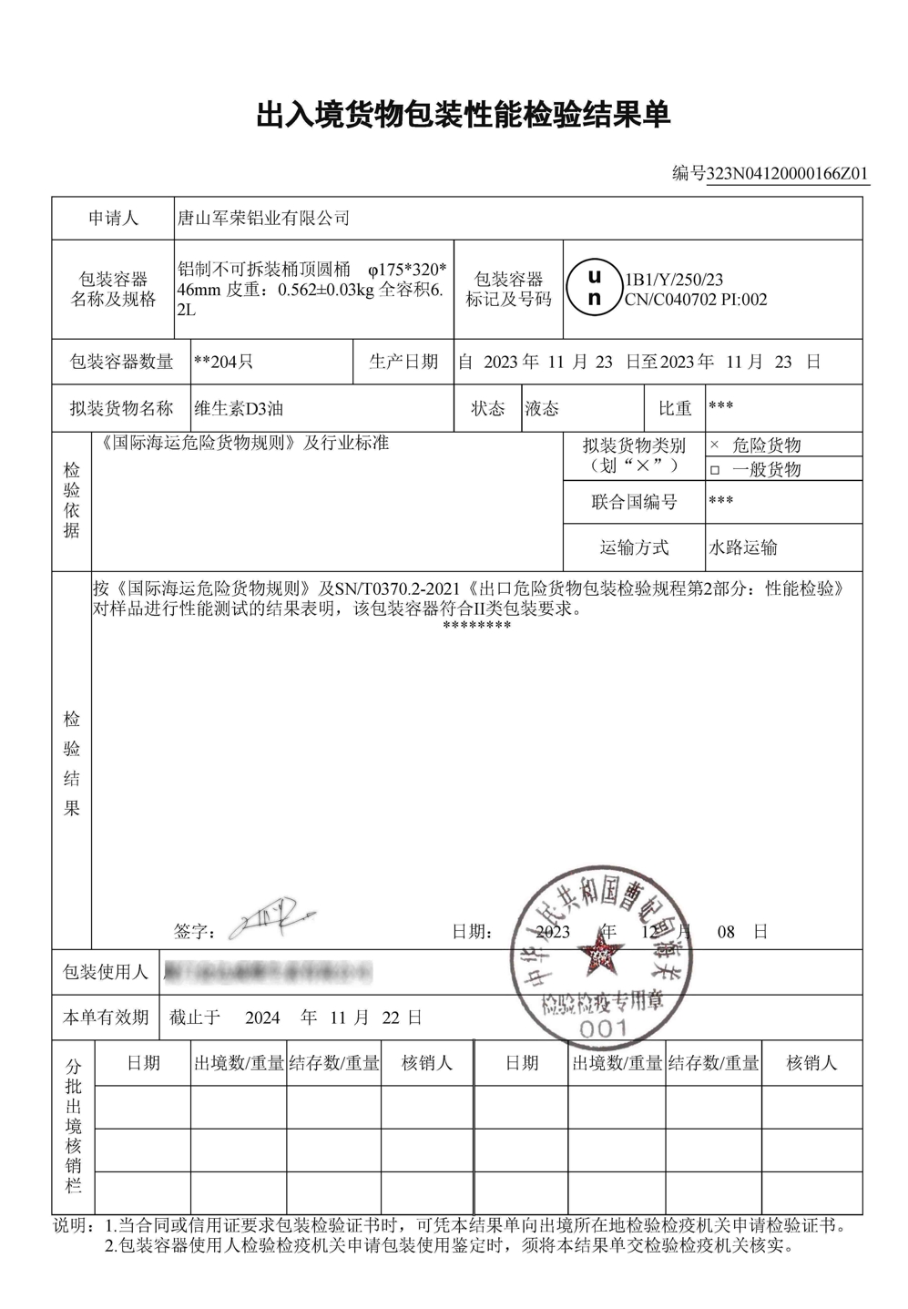 鋁瓶能作為危包使用了,本公司產(chǎn)品能辦理危包性能單........